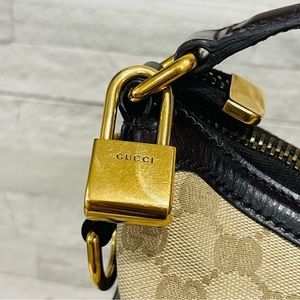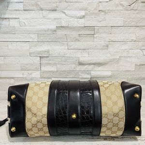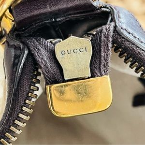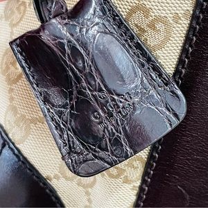 GUCCI Monogram Crocodile Web Medium Secret Hobo Dark Brown Leather Handbag