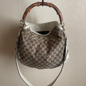 GUCCI Monogram Diana Medium Bamboo Canvas Shoulder Bag