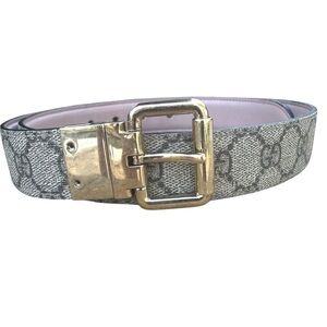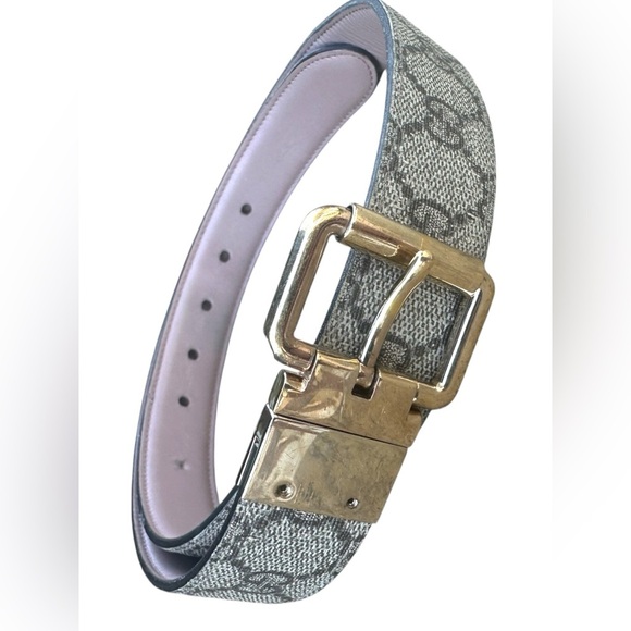 GUCCI Monogram Double G Reversible Mauve Pink Leather Gold Women's Belt 38”