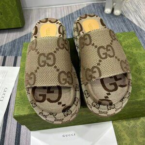 GUCCI Monogram Jumbo GG Brown Slide Sandals