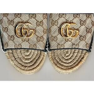 GUCCI Monogram Matelasse GG Marmont Espadrille Slide Sandals Size 38 Beige Black