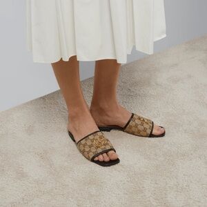 ❤️Lovely GUCCI Monogram Matelasse Diagonal GG Marmont Flat Slide Sandals with Beige Ebony Mystic White Leather Trim