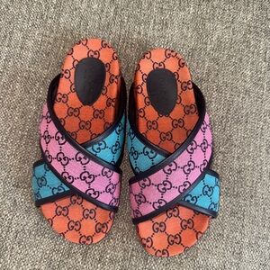 GUCCI Monogram Multicolor Mens/Womens Criss Cross Slide Sandals