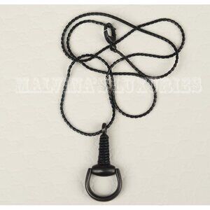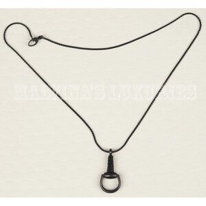 Unique Features: Necklace with Instantly Recognizable Horsebit Pendant with Black Leather Wrapping. Clasp Closure