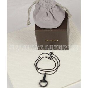 GUCCI NECKLACE HORSEBIT PENDANT .925 STERLING SILVER LEATHER WRAP