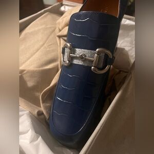 GUCCI NWT NIB royal blue leather horsebit accent platform loafer heels sz 42