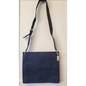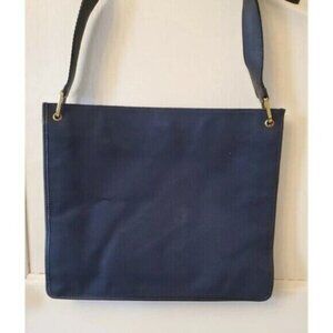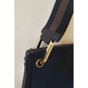 GUCCI Navy Blue Canvas Messenger Leather Trim Shoulder Bag