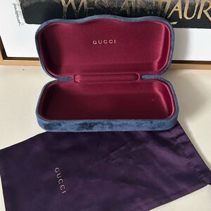 GUCCI Navy Velvet Eyeglass Case with Purple Pouch Luxe Designer Storage