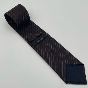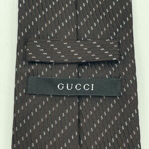 GUCCI Necktie Mens Brown Striped Broken Lines Jacquard Textured 100% Silk Formal