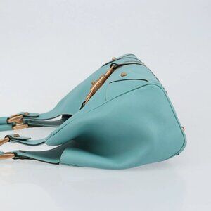 GUCCI New Jerky Shoulder Bag Leather Blue Gold 124407 Auth 147486