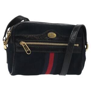 GUCCI Ofdea Sherry Line Shoulder Bag Suede Navy Gold