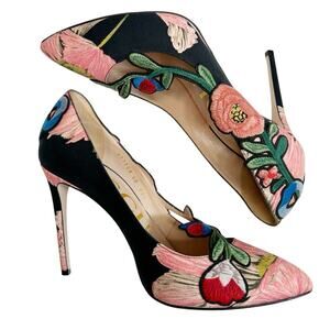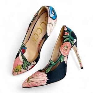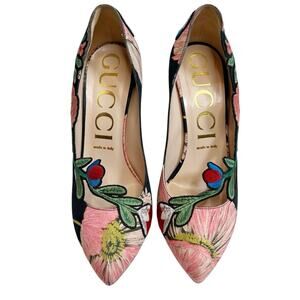 Tags: designer, luxury, authentic, cottagecore, tea party, garden party, feminine, girly, spring, summer, fall, colorful, statement, event, date night, wedding guest, bridal shower, engagement party, rehearsal, pumps, Gucci Ophelia pumps, floral embroidered Gucci heels, satin designer stilettos, black and pink Gucci shoes, Italian-made Gucci footwear, luxury statement pumps, pointed toe high heels, multicolor floral Gucci stilettos, runway-level Gucci shoes, bold embroidered designer heels, collectible Gucci pumps, evening-ready luxury shoes, high-fashion floral Gucci heels.