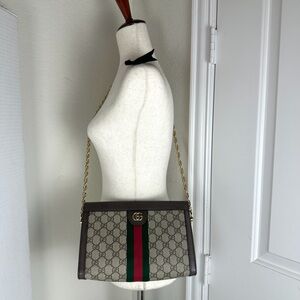 🤎 GUCCI Ophidia GG Shoulder Bag | Web Stripe | Gold Chain | Authentic