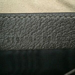 Elegant Gucci pouch with signature monogram. Features beige and brown tones. Gold hardware adds a touch of luxury.