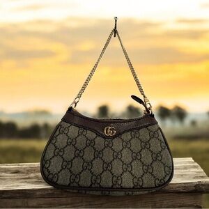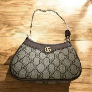GUCCI Ophidia Mini Beige And Ebony GG Canvas Bag New