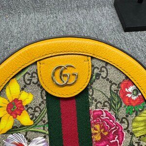 GUCCI Ophidia Round Chain Yellow Multicolor Leather Shoulder Bag 550-080825