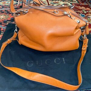 Gorgeous Gucci Icon Bit series large tote bag. Used only a few times, in excellent condition inside and very good to excellent outside. A tiny bit of wear on the bottom, as seen in the pics. Details and dimensions are in one of the pics. Includes original dust bag. The last pic from another website shows the more accurate colour which is a darker more subtle orange. This pic is for reference only and is not the one I’m selling. Thanks !