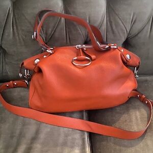 GUCCI Orange Pebbled Leather Icon Horse Bit Large Hobo Bag