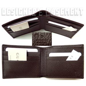Brand New Authentic Gucci men Original GG Jacquard Canvas with brown pebbled Leather interior bi-fold wallet