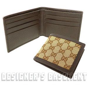 GUCCI Original GG Jacquard canvas & dark brown leather bifold Wallet NIB 260987