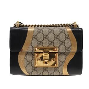 GUCCI Padlock GG Supreme Chain Shoulder Bag Pvc Beige
