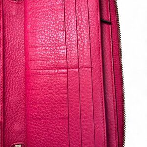 GUCCI Pebbled Leather Soho Zip Around Interlocking G Logo Long Wallet - Pink