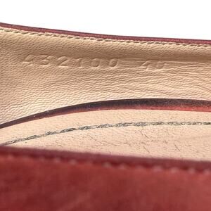 Good overall condition. Suede shows visible wear, marks, and darkening throughout. Heels have scuffs and wear to suede; heel tips slightly worn. Soles show heavy wear. Require suede cleaning . All metal hardware intact.
