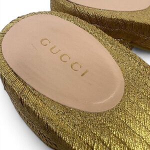 Exuding a cool summer vibe while giving all the comfort to your feet, these Gucci espadrille sandals are always vacation ready. Crafted from leather and raffia, the slides feature the embossed Gucci logo on the front, open toes, and chunky heels. Wear these designer sandals to spruce up any outfit.