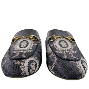 GUCCI Princetown Horsebit Floral Jacquard Canvas Mules
