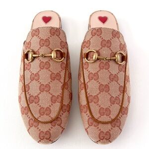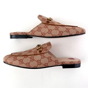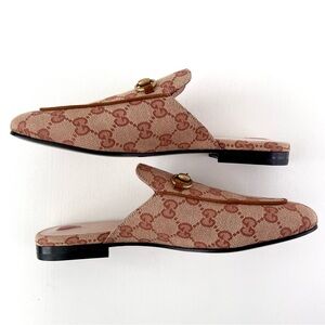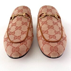 GUCCI || Princetown Horsebit Tan Beige GG Monogram Logo Flats Mules Slippers 7