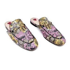 GUCCI Princetown Loafers Mules with Tiger Pink Floral Print Size EU 36.5 US 6.5