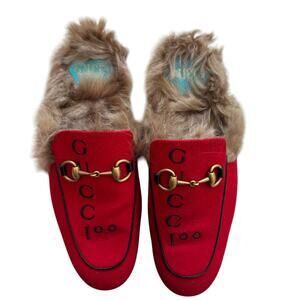 GUCCI Princetwon Horsebit Mule with Fur Gucci 100 Red Size 7