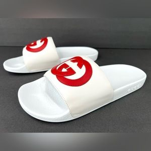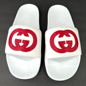 GUCCI Pursuit Slides Double G Logo Pool Rubber Open Toe Sandals Size EU 41