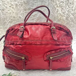 GUCCI Red Leather Vintage Sabrina Top Handle Handbag Tote Ruffle Details