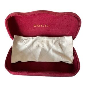 GUCCI Red Suede Large Sunglasses Case with Lens Cloth