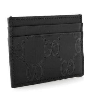 This is a Gucci Rubber-Effect GG Embossed Card Holder. It is a stylish and functional cardholder with multiple slots, typically made of leather, and features the iconic GG monogram.