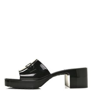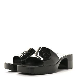 GUCCI Rubber Gucci Logo Womens Platform 20/60mm Slide Sandals 39 Black