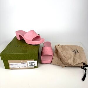 Authentic GUCCI Rubber Pink Wild Rose Platform Slide Sandals 36, 6