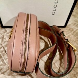 Stunning GUCCI Marmont Collection GG Chevron Stitch Waist Bag/Crossbody. Not sure it was ever worn, Like New! Beautiful Pink Blush-Nude Color! Can be worn at waist, as front or back crossbody… or just remove belt & use as a Clutch! Color is like a neutral, goes with everything. *Gucci Dust Bag Included*
