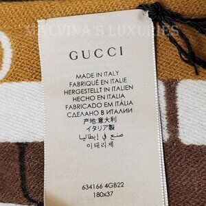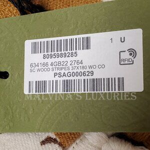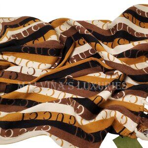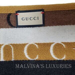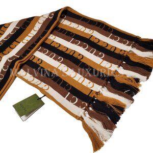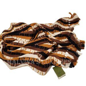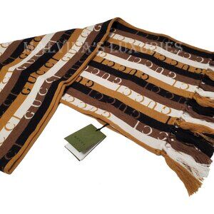 GUCCI SCARF 634166 LOGO STRIPED WOOL COTTON w FRINGE UNISEX 14.5" x 71"