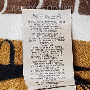 Unique Features: Long Multi colored Scarf made of Wool and Cotton. Embellished with Embroidered Stripe Pattern and Signature Logos all over. Finished with Fringe Trim. Unisex Style.