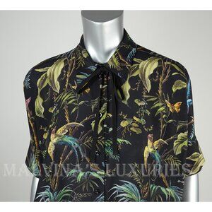 GUCCI SHIRT TROPICAL PRINT SILK CAPE TOP GROSGRAIN TIE BLOUSE sz IT 40 US 4