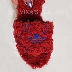 GUCCI SHOES ADIDAS TREFOIL GG LOGO SHEARLING EFFECT SLIDE SANDALS sz 39.5 9.5