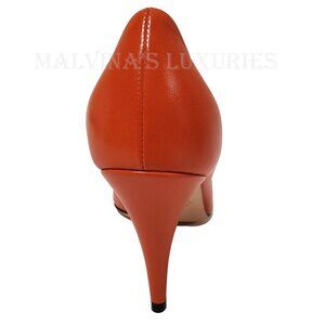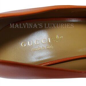 GUCCI SHOES ADIDAS X TREFOIL ORANGE LEATHER PUMPS w LOGO sz 37 / 7