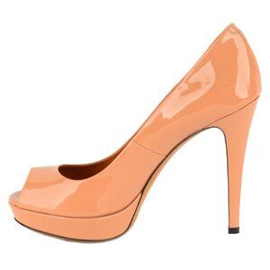 GUCCI SHOES BETTY PATENT LEATHER PLATFORM OPEN TOE PUMP PHARD sz 39.5 9.5