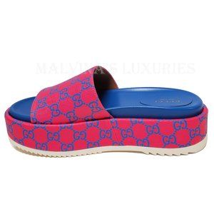 GUCCI SHOES GG SUPREME CANVAS JOY FUCHSIA PLATFORM SLIDE