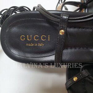 GUCCI SHOES INTERLOCKING G LOGO ANKLE TIE STRAPPY BLACK SANDALS sz 39.5 9.5