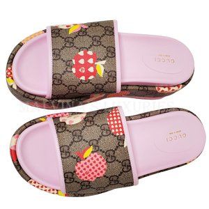 GUCCI SHOES LES POMMES APPLE GG SUPREME LOGO PLATFORM SLIDE IT 40 / US 10