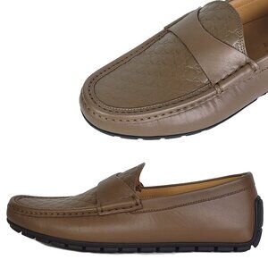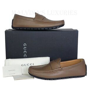 GUCCI SHOES MENS DRIVER MICROGUCCISSIMA LOGO MOCCASINS BROWN LEATHER sz 7G 7.5