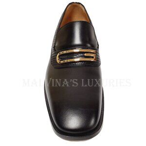 GUCCI SHOES MENS GEOMETRIC G LOGO BLACK LEATHER LOAFERS w LIZARD sz 10 10.5